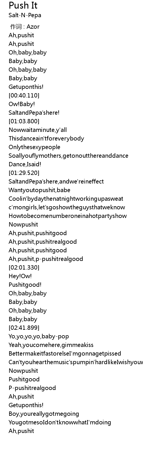 | [01:32.890] | Wantyoutopushit,babe |