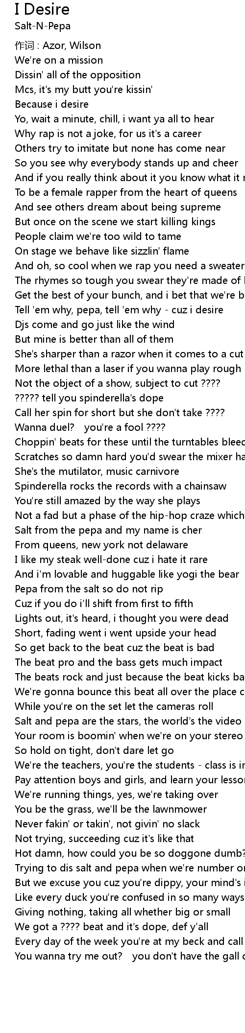 | Tell 'em why, pepa, tell 'em why - cuz i desire | |
