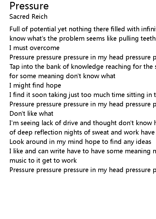 Pressure pressure pressure in my head pressure pressure pressure in my head |
