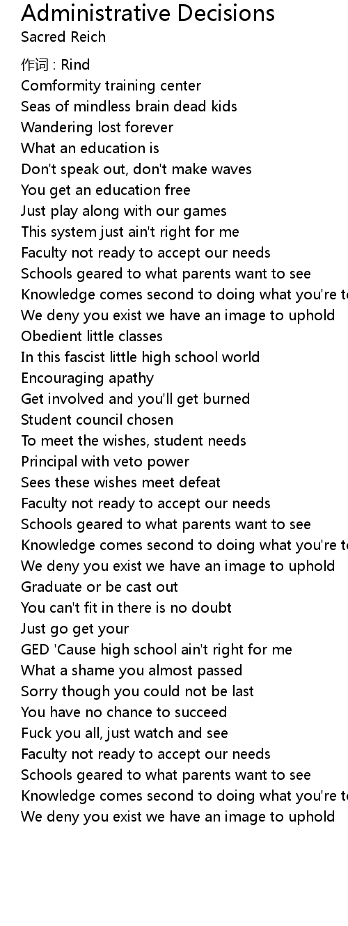 | 歌曲 | Administrative Decisions |