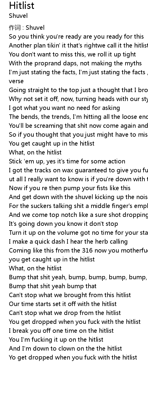 | Another plan tikin' it that' s rightwe call it the hitlist | |