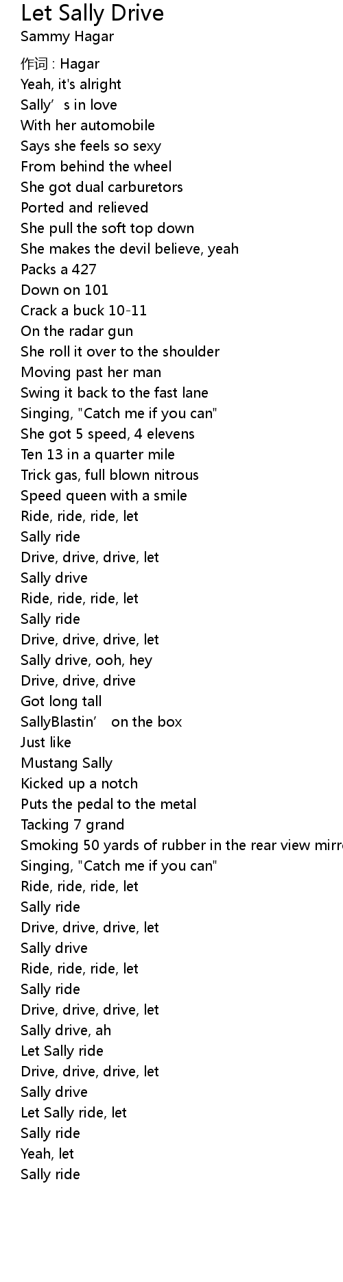 | Sally drive, ooh, hey | |
