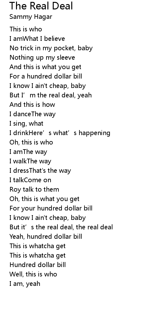 | But I' m the real deal, yeah | |