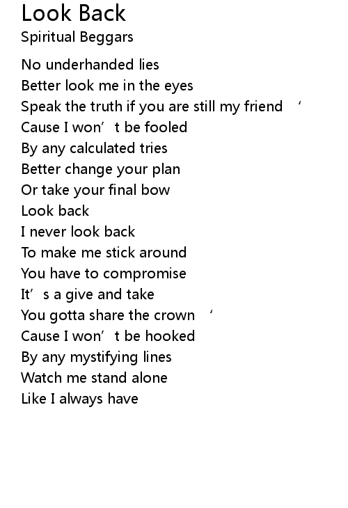 | I never look back | |