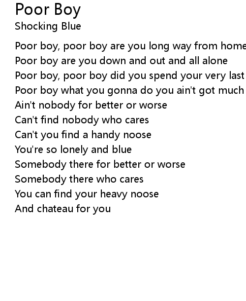 | Poor boy are you down and out and all alone | |