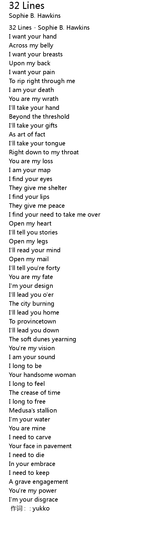 | 32 Lines Sophie B. Hawkins | |