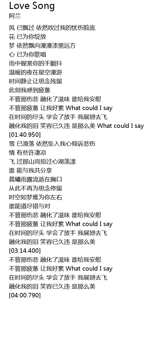 | [01:32.220] | 融化我的泪 笑容已久违 是那么美 What could I say |