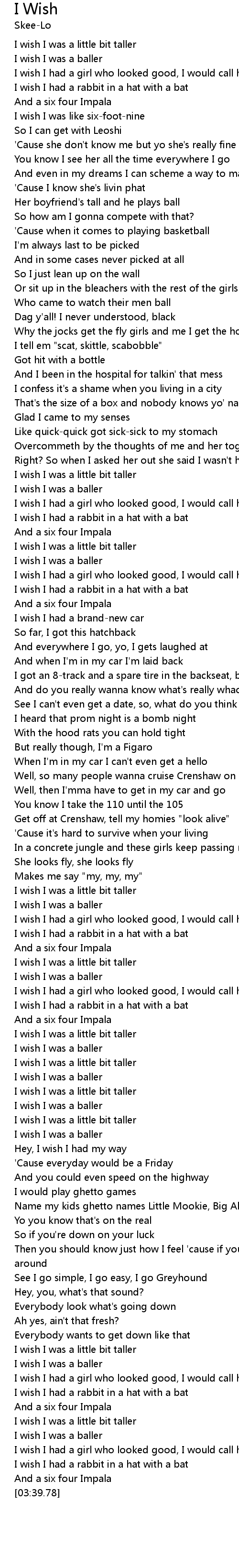| [02:39.56] | I wish I was a little bit taller |