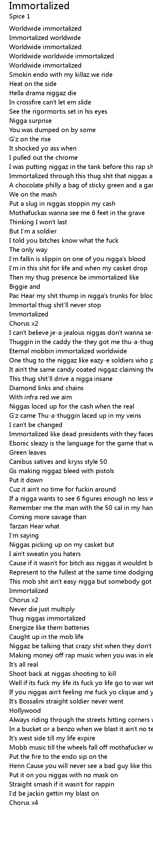 Immortalized through this thug shit that niggas are spittin |