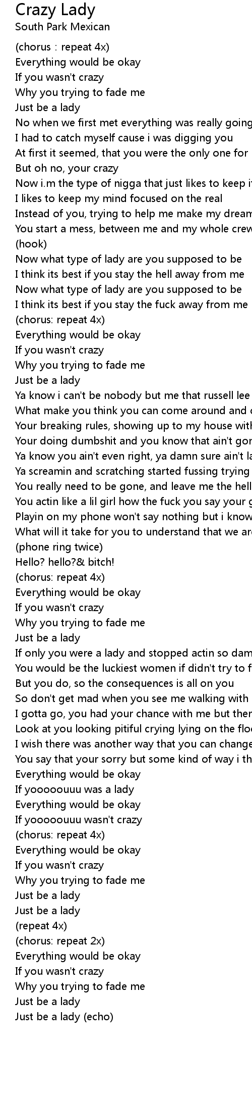 | Ya know you ain' t even right, ya damn sure ain' t lady like | |