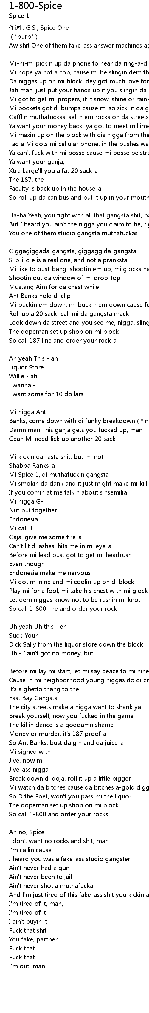 | Aw shit One of them fakeass answer machines again 1800fakeassanswermachine dial tone VERSE 1: Spice 1 | |