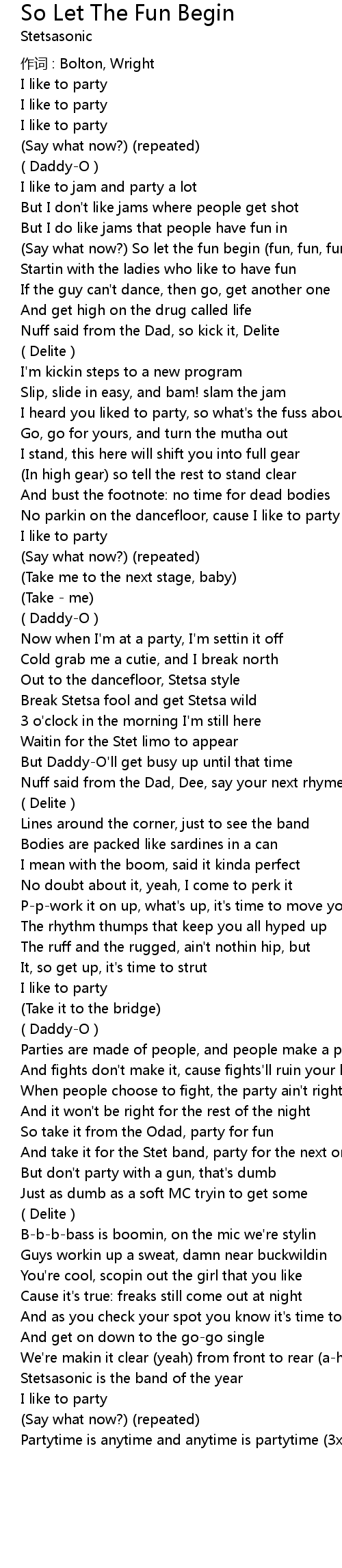 | (Say what now?) So let the fun begin (fun, fun, fun) | |