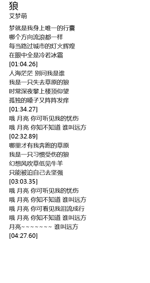 | [01:13.00] | 我是一只失去草原的狼 |