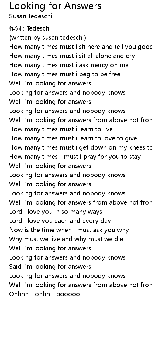 | 歌曲 | Looking for Answers |
