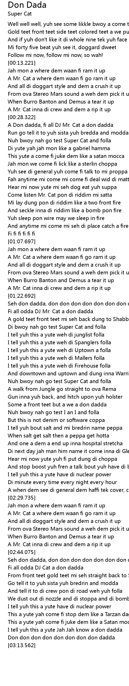 | [00:28.563] | A Don dadda, fi all DJ Mr. Cat a don dadda |