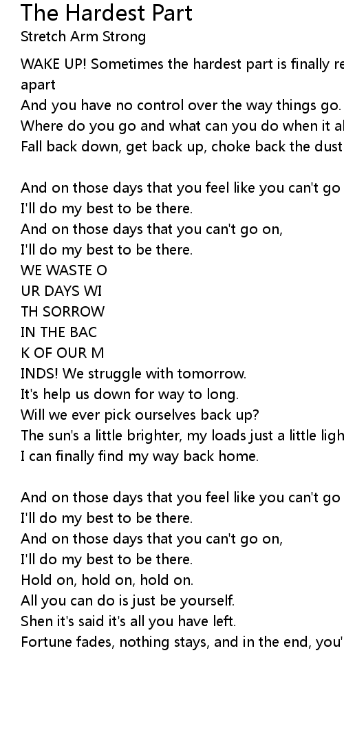 Fall back down, get back up, choke back the dust and stand up. will we ever pick ourselves back up? [Chorus] |