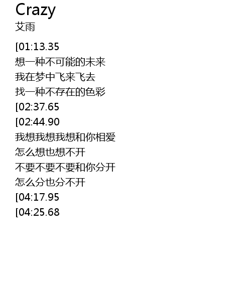 | [04:39.73][04:25.68][04:10.91][03:56.64] | YesCrazyForYou |