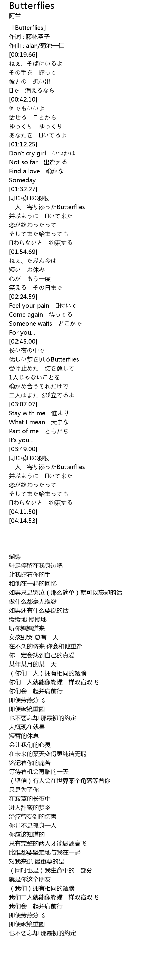 | [03:53.21] | èr rén jì tiān Butterflies |