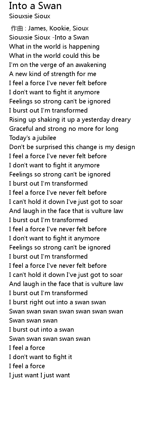 | [03:00.440] | I burst right out into a swan swan |
