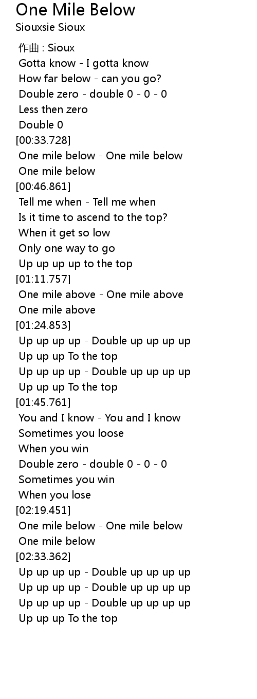 | [00:33.854] | One mile below - One mile below |