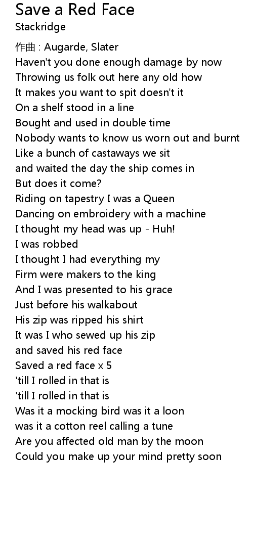 | 歌曲 | Save a Red Face |
