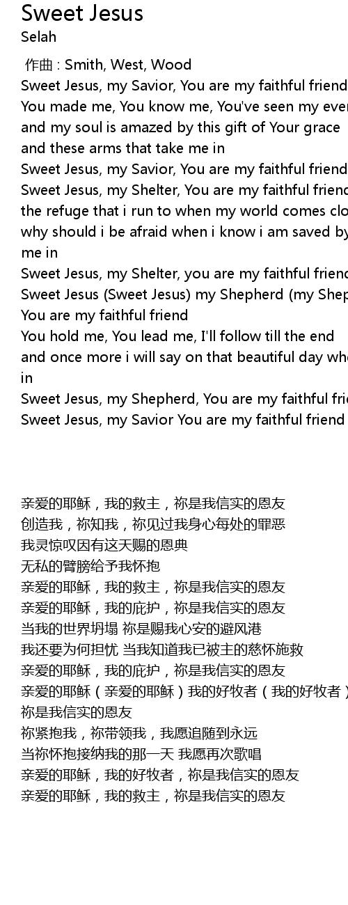 | [02:40.950] | Sweet Jesus, my Savior You are my faithful friend |