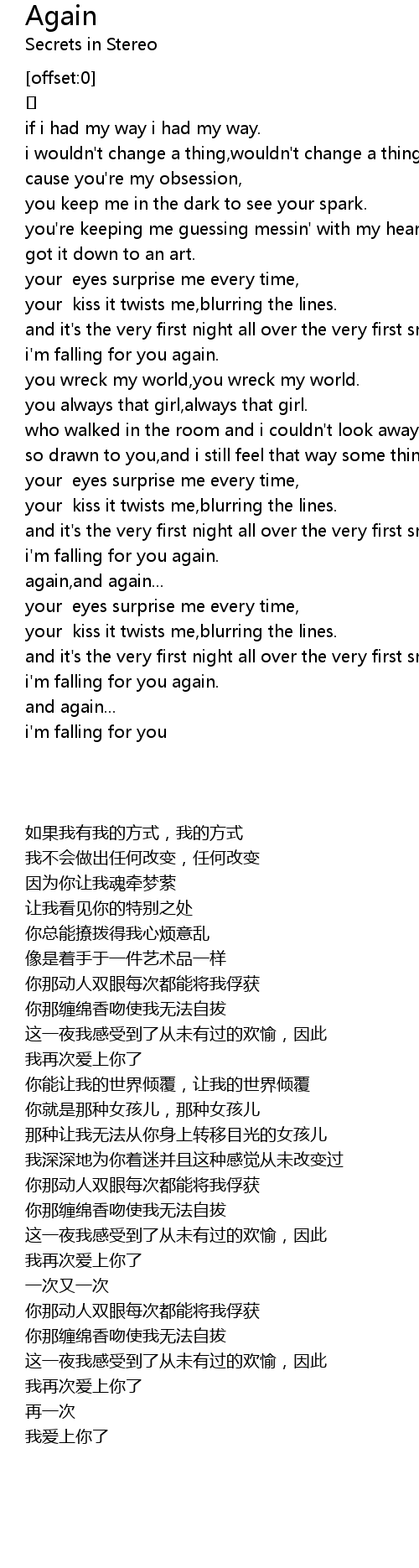 | [02:53.797] | and it' s the very first night all over the very first smile and then. |