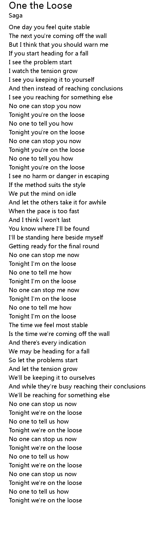 Tonight you're on the loose |