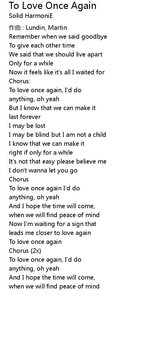 | 歌曲 | To Love Once Again |