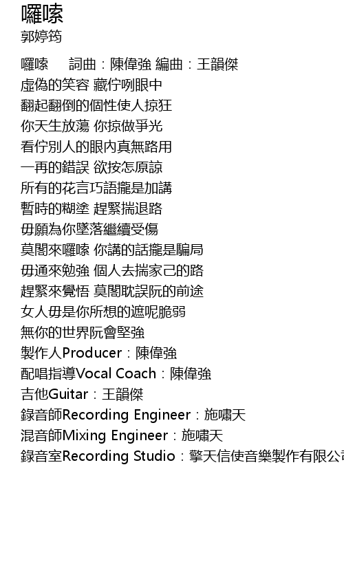 | 囉嗦 詞曲:陳偉強 編曲:王韻傑 | |