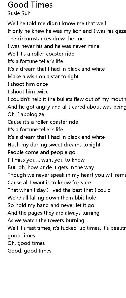 Well it's fast times, it's fucked-up times, it's beautiful times, and it's good, good times