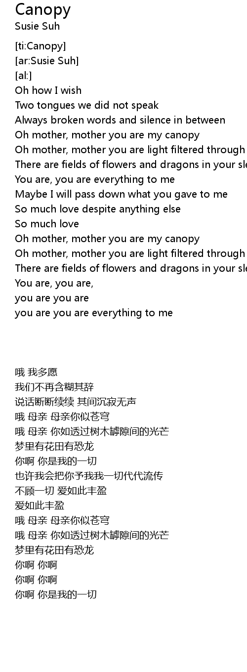 Oh mother, mother you are my canopy |