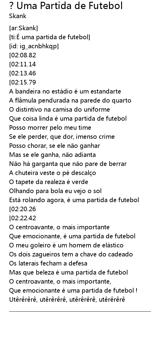 | [02:03.90] | Mas que beleza é uma partida de futebol |