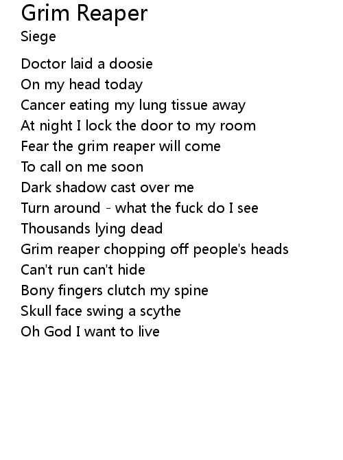 | Fear the grim reaper will come | |