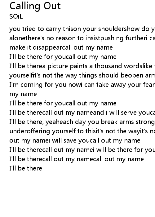 I'll be there, yeaheach day you break arms strongerno matter what cloud you're underoffering yourself to thisit's not the wayit's not the way into therecall out my namei will save youcall out my name |