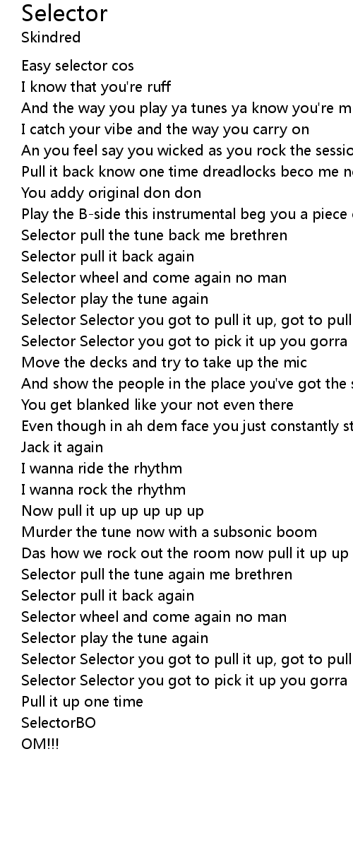 | Selector Selector you got to pick it up you gorra pull it up[Chorus] | |
