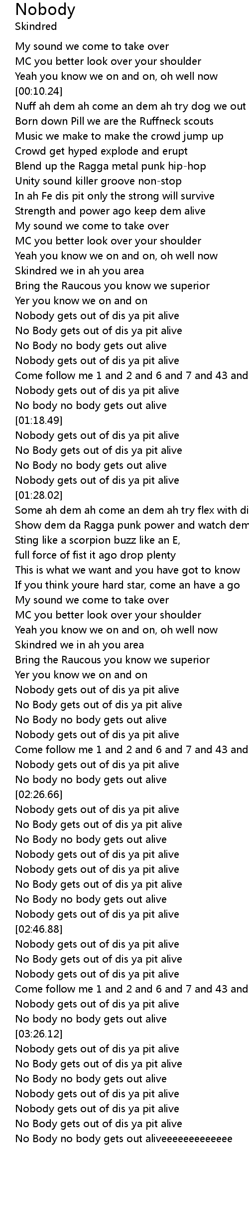 | [03:43.25] | No Body gets out of dis ya pit alive |