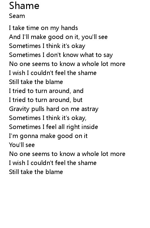 | I wish I couldn't feel the shame | |