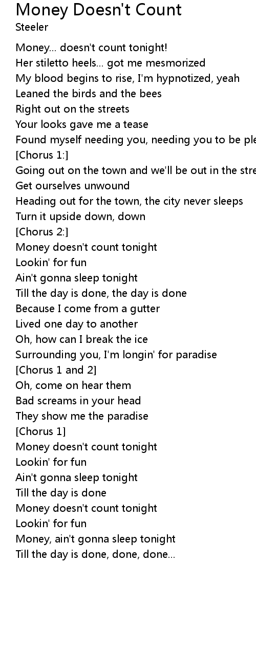 Money doesn't count tonight |