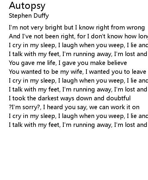 I talk with my feet, I'm running away, I'm lost and I long for oblivion |