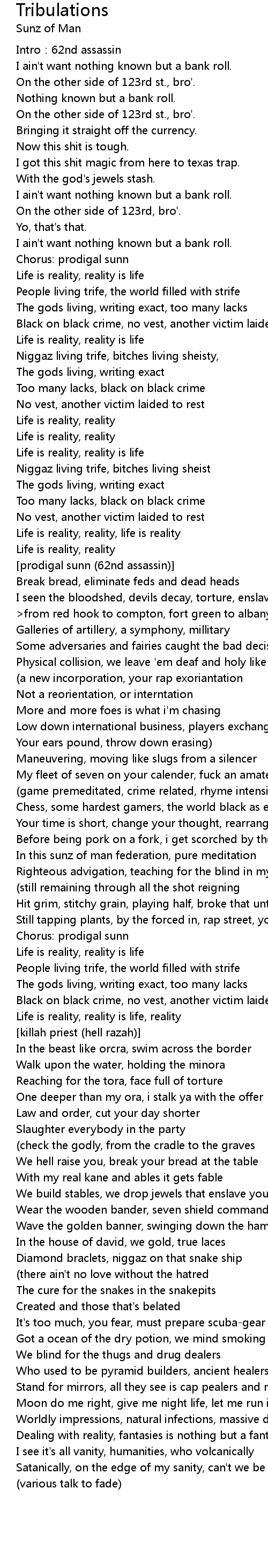 | Niggaz living trife, bitches living sheist | |