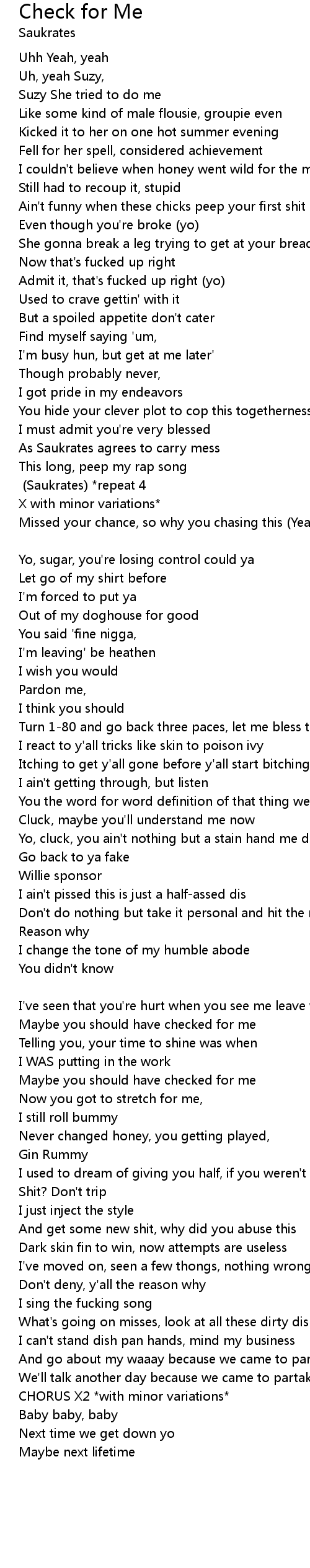 Missed your chance, so why you chasing this (Yeah, you should have checked for me) [Saukrates]