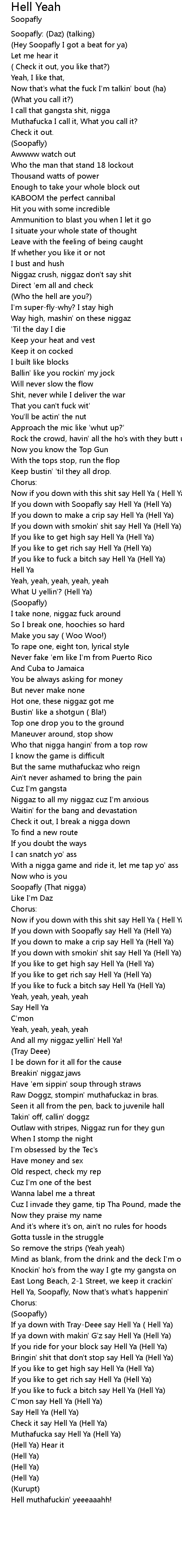 And all my niggaz yellin' Hell Ya!
