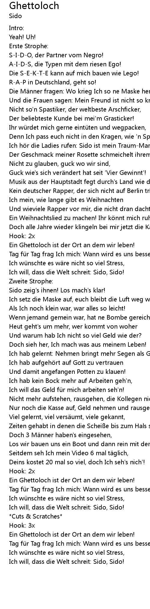 | Ich will, dass die Welt schreit: Sido, Sido! | |