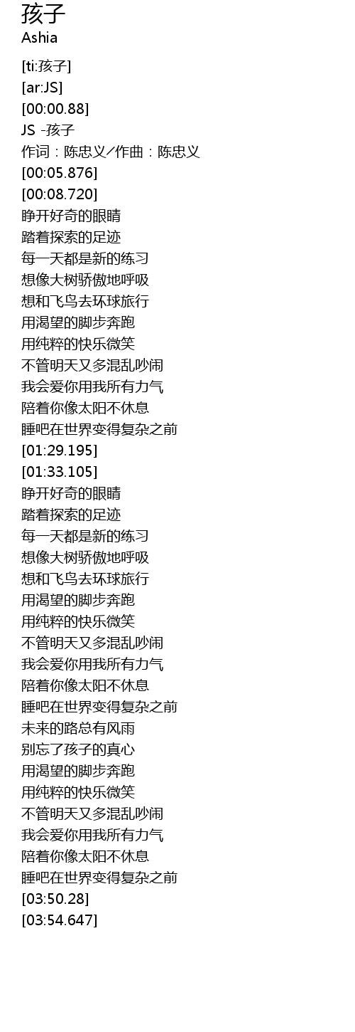 | [03:00.543] | 别忘了孩子的真心 |