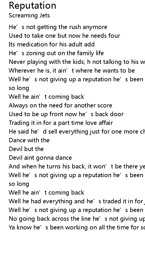 | Well he' s not giving up a reputation he' s been working on all the time for so long | |
