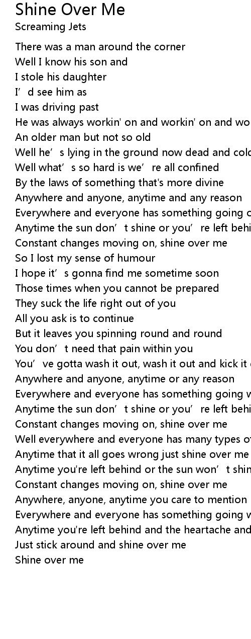 | Anytime that it all goes wrong just shine over me | |