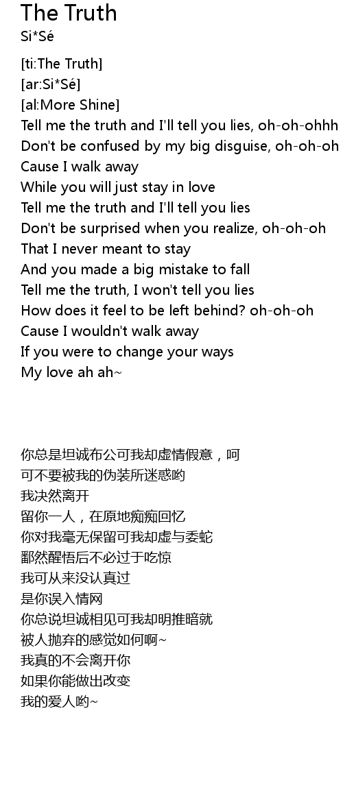 | [00:16.11] | Tell me the truth and I' ll tell you lies, ohohohhh |