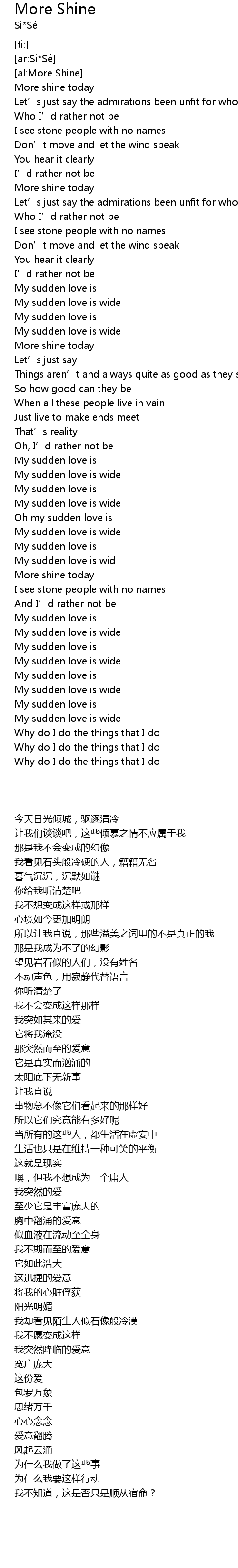 | [00:21.47] | More shine today |