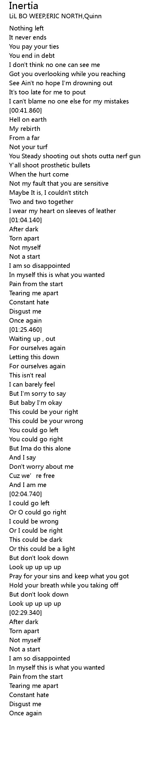 | [00:37.430] | I can't blame no one else for my mistakes |